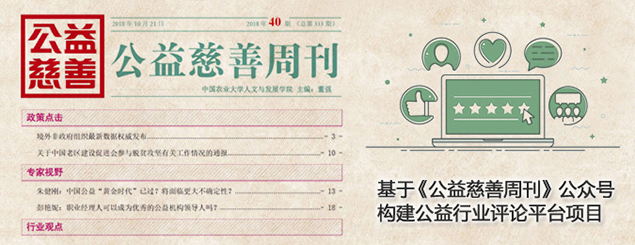In 2016, the annual China Public Welfare Commentary Award was set up with a total of ten awards to be given out. Distinguished experts in the industry were invited to judge on the most value-added online articles or commentaries written in a year. The award aims to gather the best minds of the industry on a single platform to encourage constructive and positive dialogue for the development of the industry. The award is a collaboration between the Beijing Yifang Foundation and NGOCN’s online weekly charity publication. The foundation also sponsors NGOCN’s online weekly charity publication and Gongzhong platform.